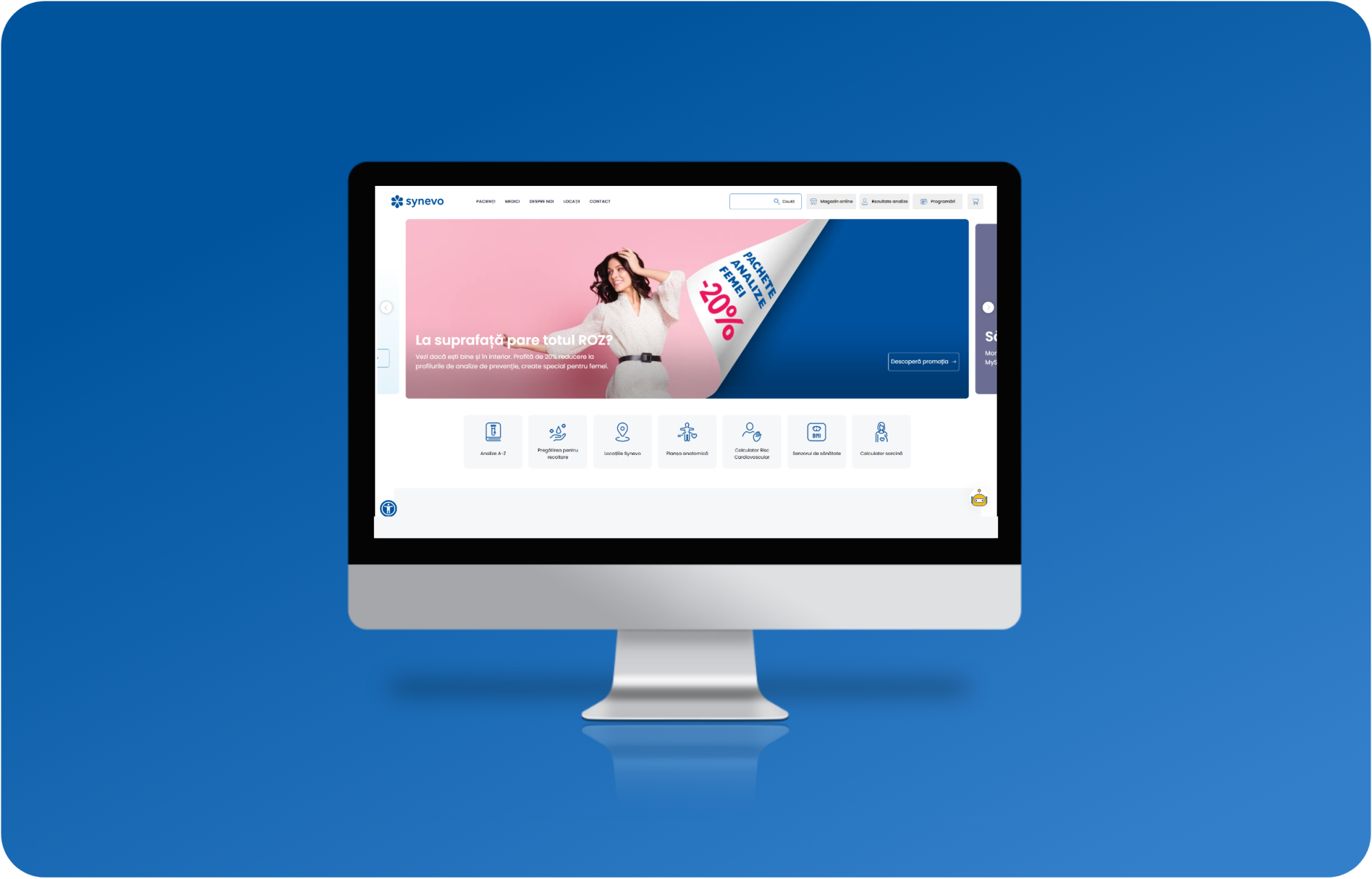 Taking over Synevo Romania in 2019 meant starting the complete digitalization of services and internal processes, helping the Touch Media team adapt to the business model and medical domain, and aligning with the methodology imposed by Synevo Medicover at group level.